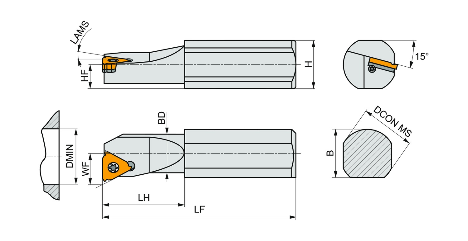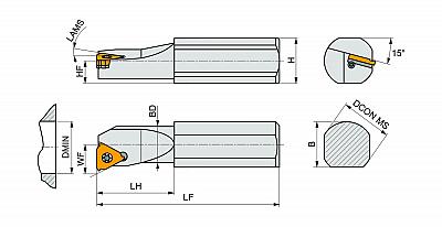 Система крепления пластины винтом, державка для точения внутренней резьбы с углом наклона профиля 1.5°, с треугольными пластинами, имеющими диаметр вписанной окружности 9.525 мм (обозначение TN 16NR.., TN 16NL.. ), правостороннего стандартного исполнения с прямым хвостовиком из стали без отверстия для подвода СОЖ, 25 мм диаметр, 180 мм длина для точения внутренней резьбы, точения канавок для стопорных колец, точения канавок для уплотнительных колец