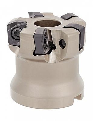 Фреза для работыс высокой подачей на зуб с двухсторонней пластиной и 4 режущими кромками.