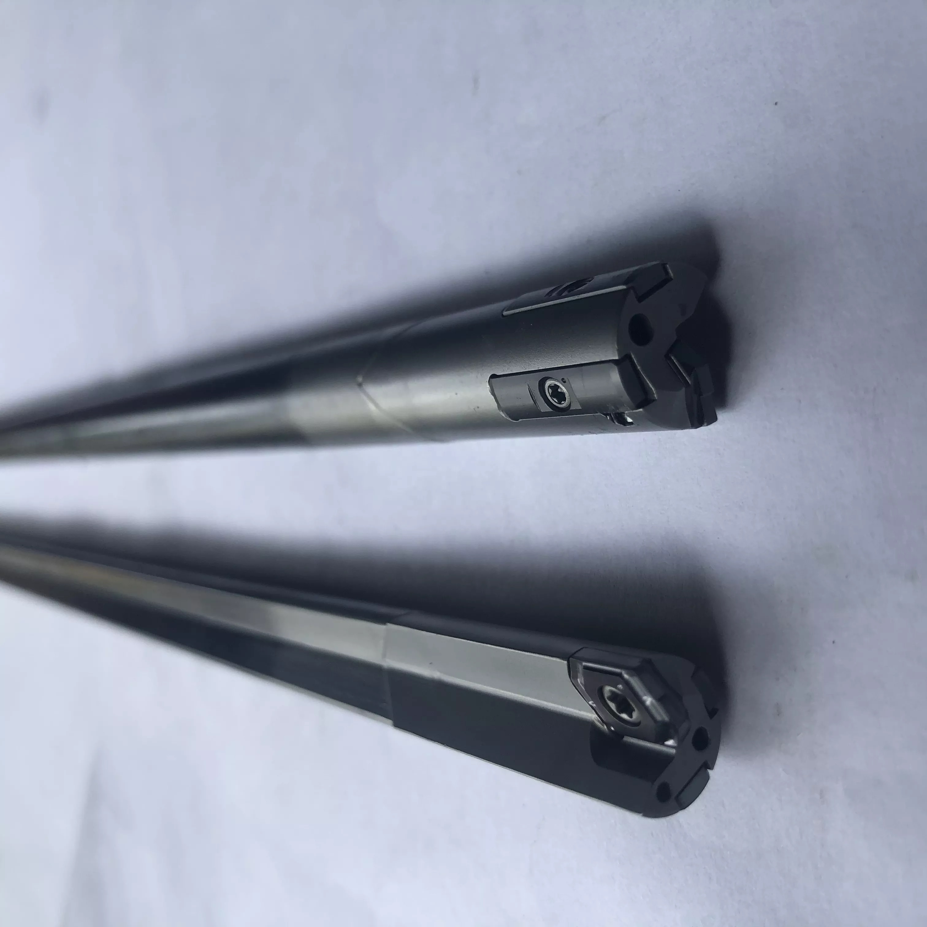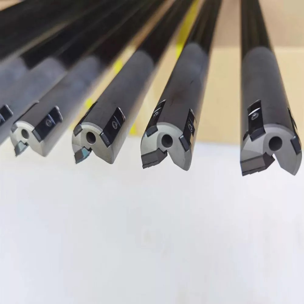 Треугольные пластины имеют 3 режущие кромки. Стружколомы с положительным передним углом и геометрия разделения стружки позволяют использовать скорость подачи в 3-4 раза выше, чем у традиционных ружейных сверл. Они изготовлены из микрозернистого карбида и доступны с несколькими износостойкими покрытиями PVD.