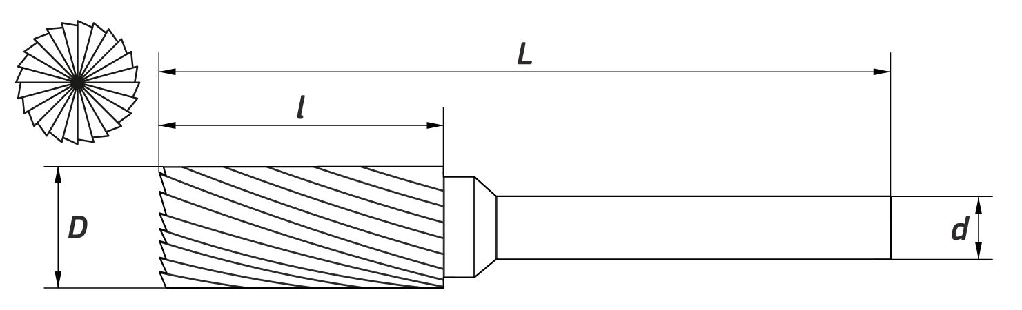 Главная - Инструмент - Фрезы - Борфрезы - Тип B - Борфрезы цилиндрические с торцевыми зубьями - Глубокая одинарная насечка