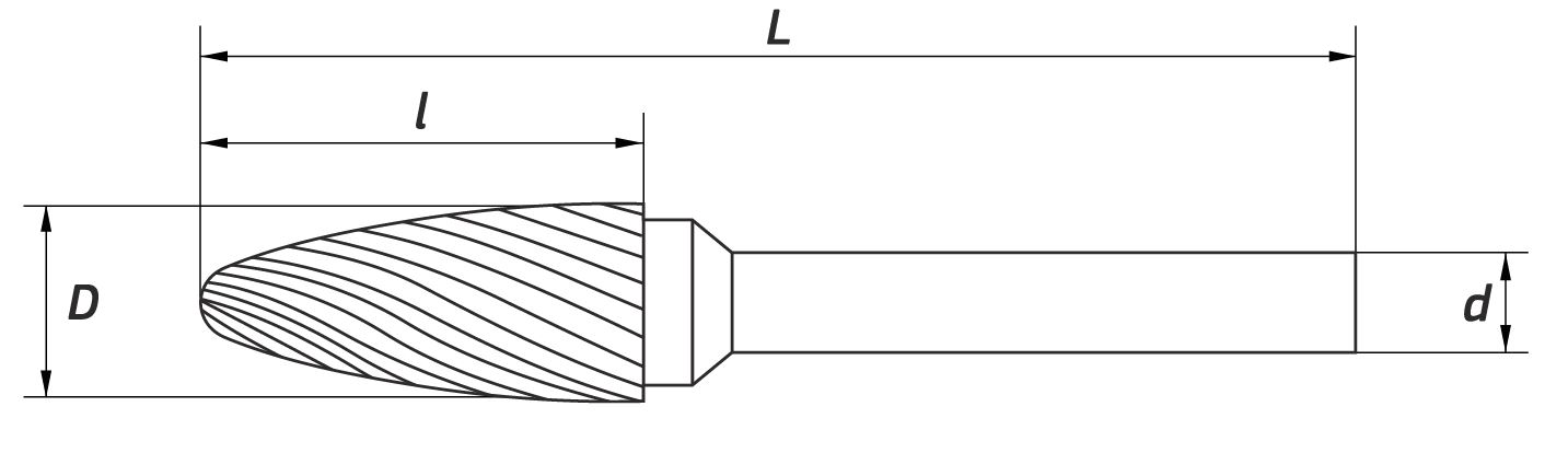 Твердосплавная бор-фреза параболическая Тип F .