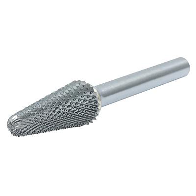 Твердосплавная бор-фреза сфероконическая Тип L. Размеры : диаметр рабочей части 12 мм, диаметр хвостовика 6 мм, длина рабочей части 28 мм, длина хвостовика 45 мм. Алмазная насечка.