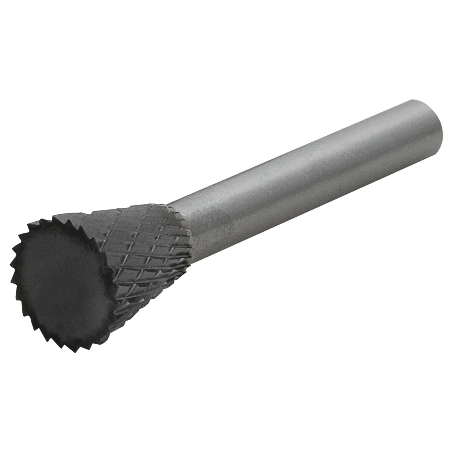 Твердосплавная бор-фреза обратный конус Тип N . Размеры : диаметр рабочей части 16 мм, диаметр хвостовика 6 мм, длина рабочей части 16 мм, длина хвостовика 45 мм. Двойная насечка.